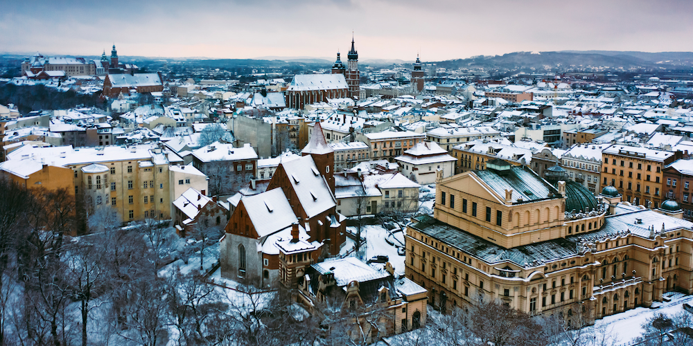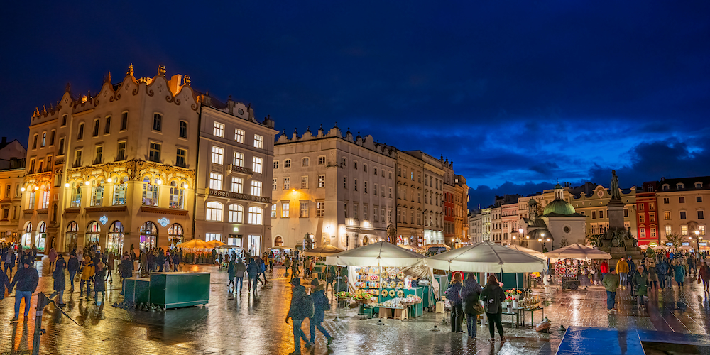 Comparência no aeroporto três horas antes da partida para assistência nas formalidades de embarque. Partida em voo regular com destino a Cracóvia, via Frankfurt. Chegada, desembarque e partida em direção ao centro de Cracóvia, uma das cidades mais antigas do país, com uma grande herança cultural e histórica. Visita com guia local pelo centro histórico da cidade, classificado como Património Mundial da UNESCO, com destaque para a Praça do Mercado, Basílica de Santa Maria, Sukiennice, famoso mercado de tecidos e a famosa rua Grodzka, das mais antigas da cidade repleta de edifícios históricos (visitas exteriores). Jantar. Alojamento no DoubleTree By Hilton Kraków Hotel 4* ou similar.